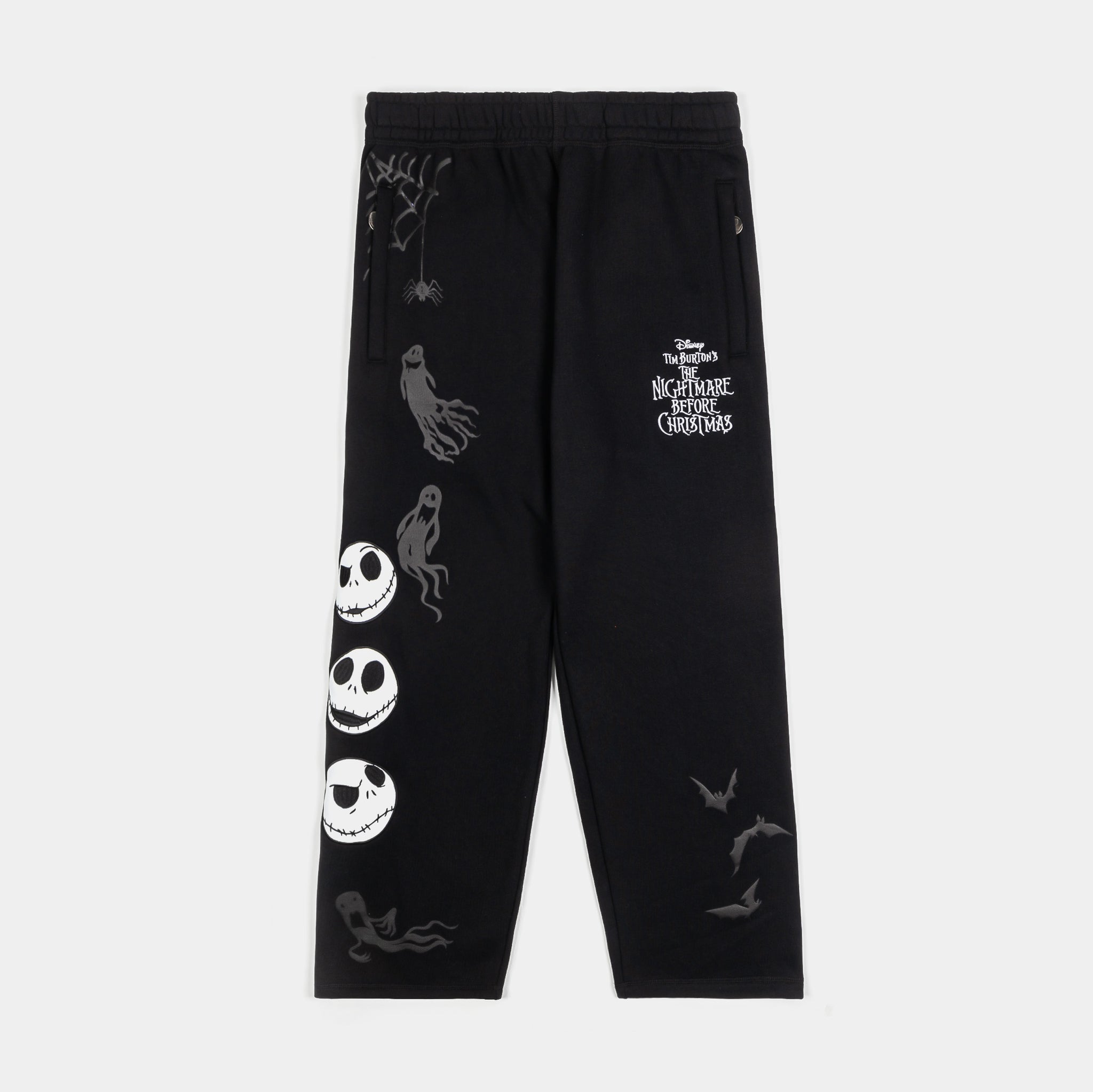 Bring a bold, spooky vibe to your wardrobe with this officially licensed Disney Tim Burton’s The Nightmare Before Christmas Don’t Play Fair Fleece Sweatpants by Shoe Palace. Featuring striking graphics of Disney’s Jack Skellington and other iconic characters, these sweatpants combine comfort and style with a playful edge.